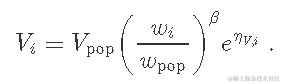 想象一下,我们现在用对数正态分布来表示体积Vi。现在是对数体积,它是转化后的重量的一个线性函数。