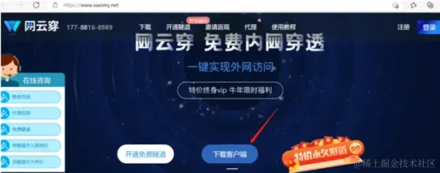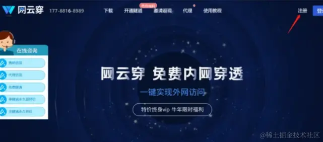 一、首先我们要先注册一个试用账号,登录网云穿官网领取试用账号;如图示