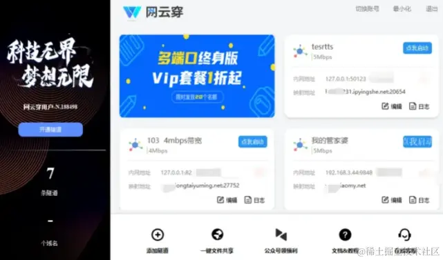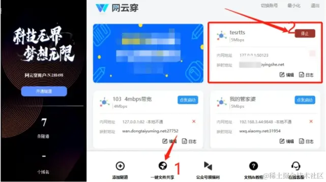 同类型的问题有很多,但是也有简单解决的方法。大多部分用户无非是没有公网ip,也没有时间自己去搭建一款类似的软件,网上有很多开源的,测试后也很不尽人意。国内企业级的服务商有闪库和网云穿,身边同事包括很多朋友都在使用,配置较简单,简单讲下测评过的网云穿的使用方法和注意事项,不懂得可以看以下图示:
