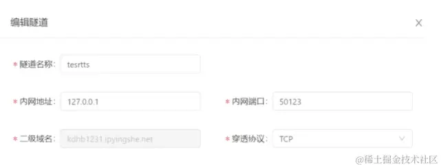 登录控制台-点隧道管理,会看到一个待配置隧道,进度条往右拉点“配置”;文件共享配置信息如下图所示