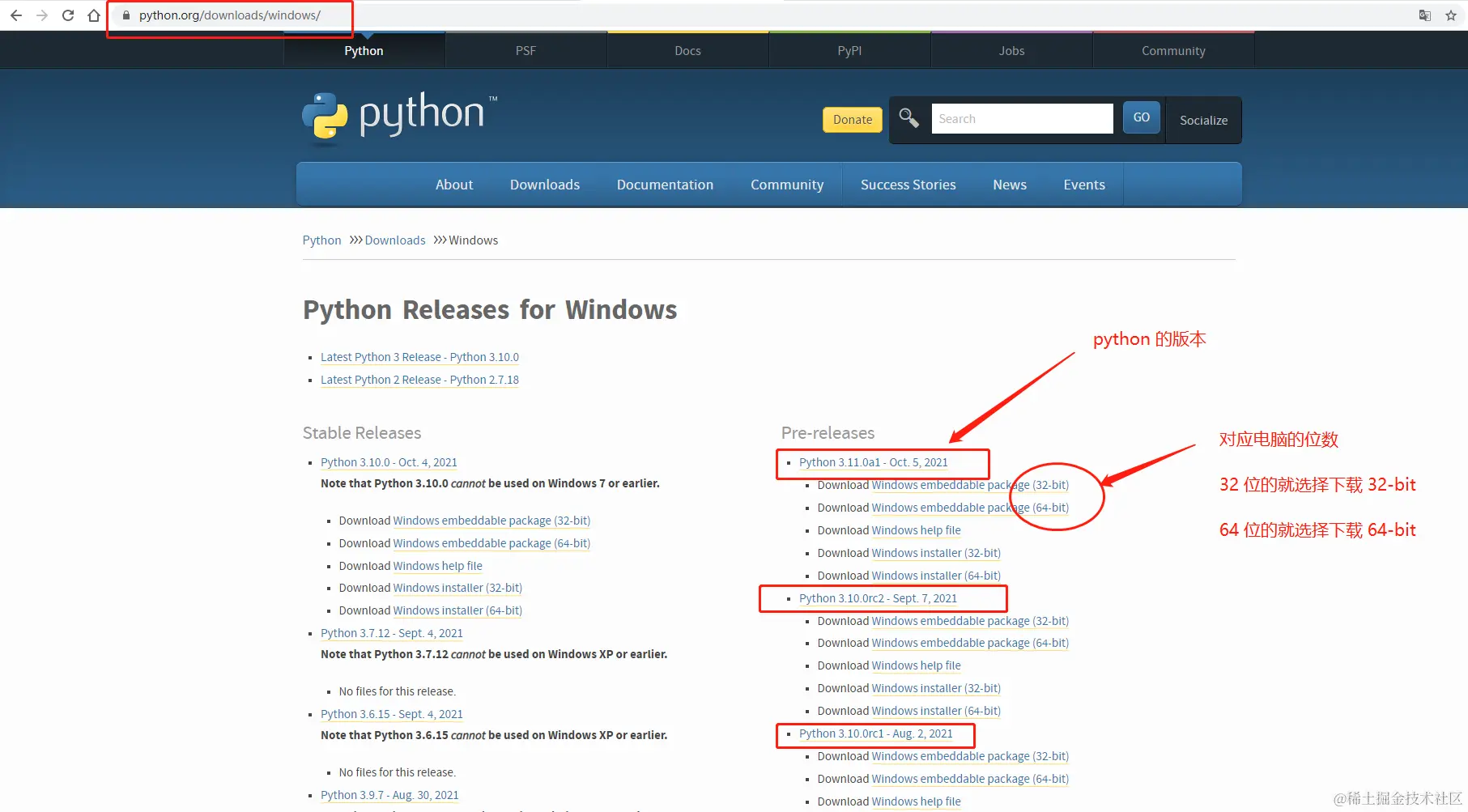 点击 Windows 后,跳转到下载页面(www.python.org/downloads/w…