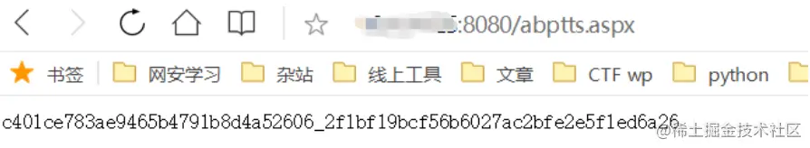 访问一下abptts.aspx,页面回显一长串密文说明abptts客户端正常
