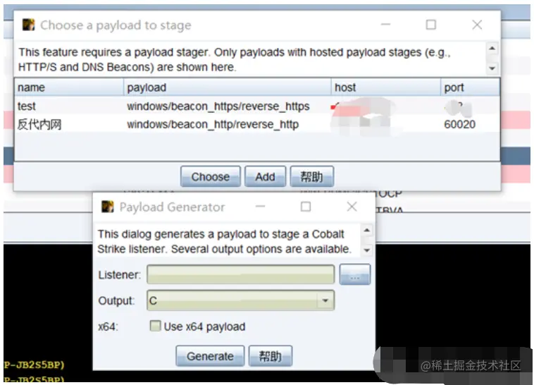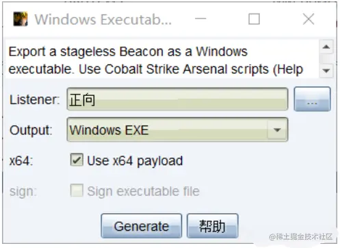 由下图可以看到,在生成payload的时候没有正向bind监听器这个选项,只有Reserver监听器选项。