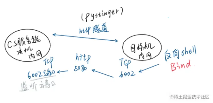 假若目标机器的出站规则十分严格且目标也不出网,反向shell在这种情况下则无法正常与cs服务端保持通讯。