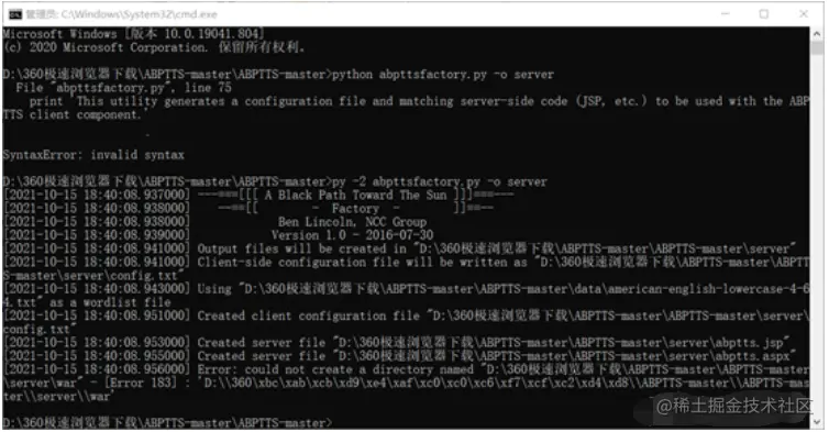 python abpttsfactory . py -o server \生成服务端脚本,初始化。