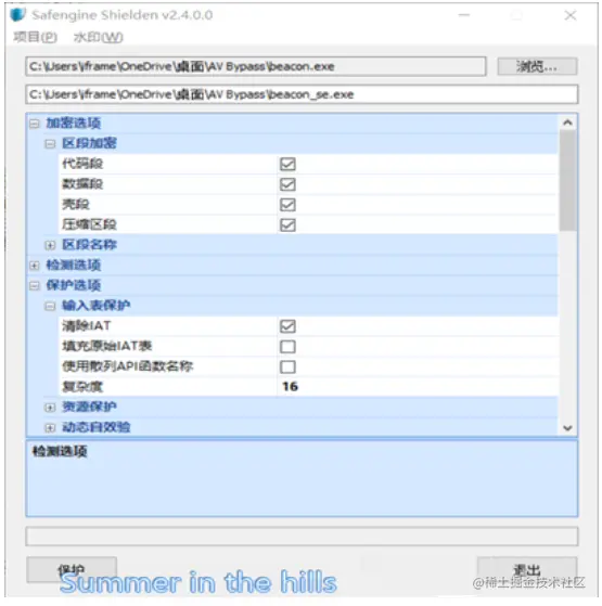反LPK注入、反调试器附加、反内存转储选上,复杂度拉满,虚拟机检测不要打勾。