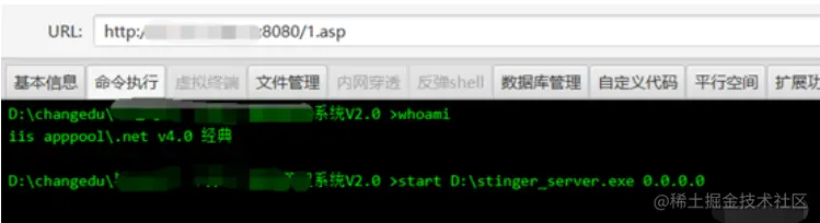 4.stinger_server.exe 上传到目标服务器,执行命令: