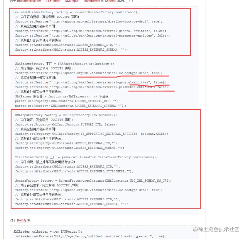 如果无法完全禁用 DTD,您可以禁用外部实体、参数实体。