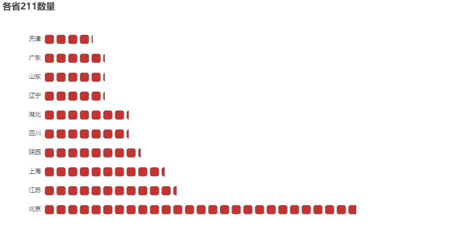 通过分析北京共计26所211高校,但从211最多的前10个省份来看,同时结合目前中国的七大分区,华中、华北、华东、华南、西北、东北、西南来看,国家对教育资源分配表面来说是均衡的。虽然教育部在2015年取消了高考地域保护政策,但是对于经济不发达的市县考生,要想考入北京、上海、江苏这三个教育资源相对多的学校,还是相对困难的。