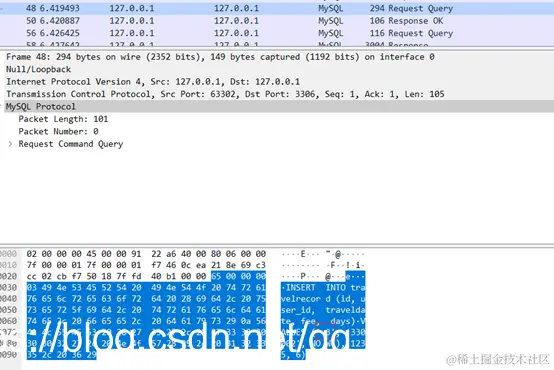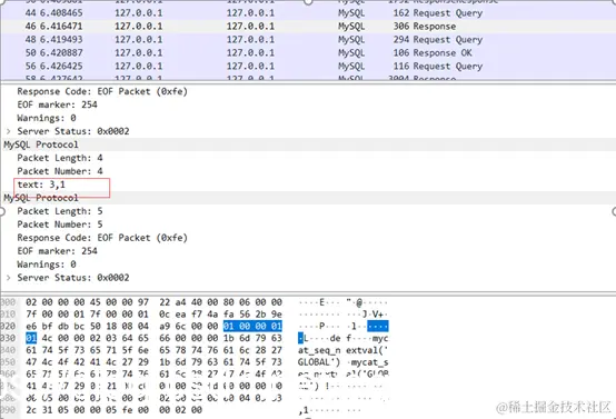 以下是使用数据库方式获取全局序列号通讯过程的一些抓包截图