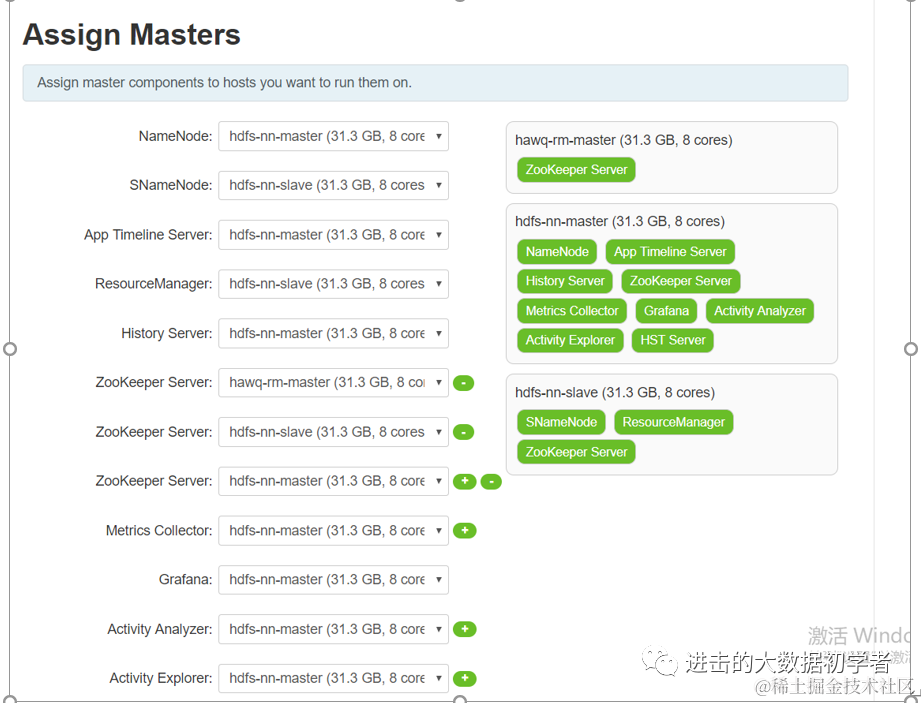 基于每个节点安装的组件设置主机名: