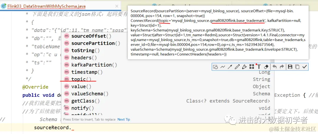 //我们就是要把SourceRecord sourceRecord 这部分内容解析成json。