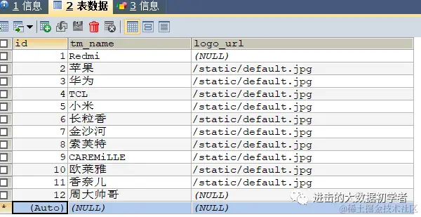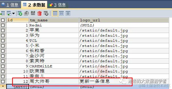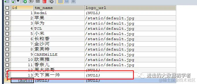 之后在mysql中插入新的数据行: