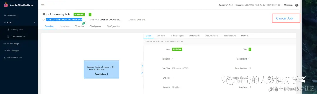 为了感受savepoint,我把这个flink任务给主动挂掉