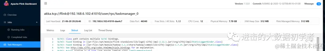 SLF4J: Found binding in [jar:file:/opt/module/flink-standalone/lib/log4j-slf4j-impl-2.12.1.jar!/org/slf4j/impl/StaticLoggerBinder.class]