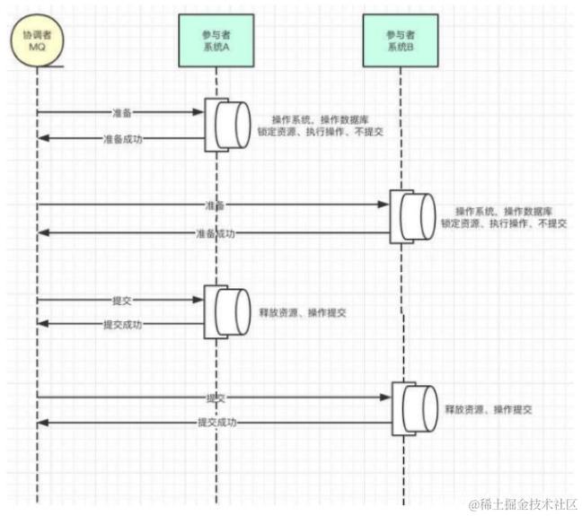 2pc(两段式提交)可以说是分布式事务的最开始的样子了,像极了媒婆,就是通过消息中间件或者全部事务管理来协调多个系统,在两个系统操作事务的时候都锁定资源但是不提交事务,等两者都准备好了,告诉消息中间件或者全部事务管理者,然后再分别提交事务。不管最后结果如何,第二阶段都会结束当前事务