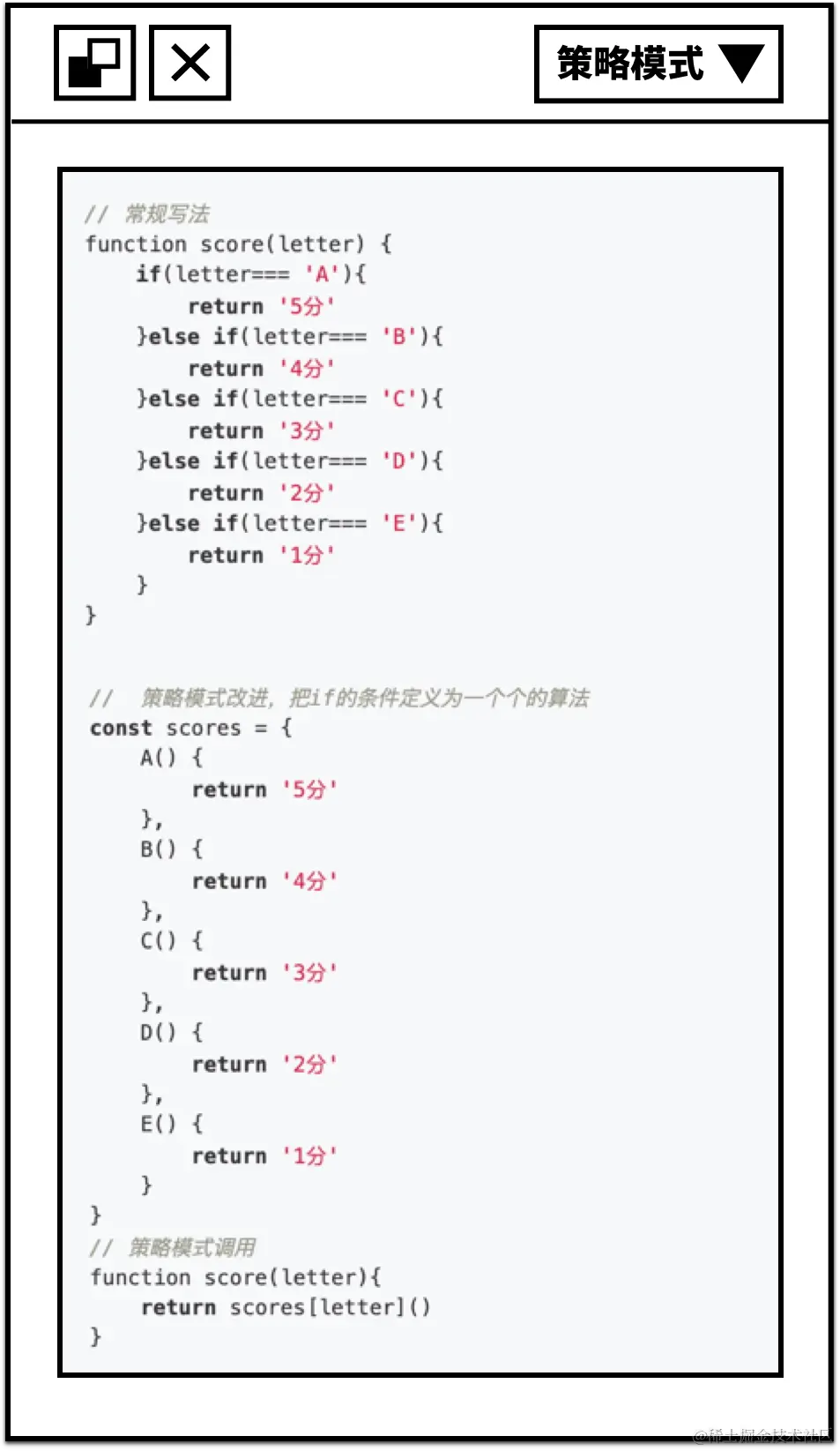 策略模式的思想是:定义一系列的算法,把它们一个个封装起来,并且使它们可以相互替换。