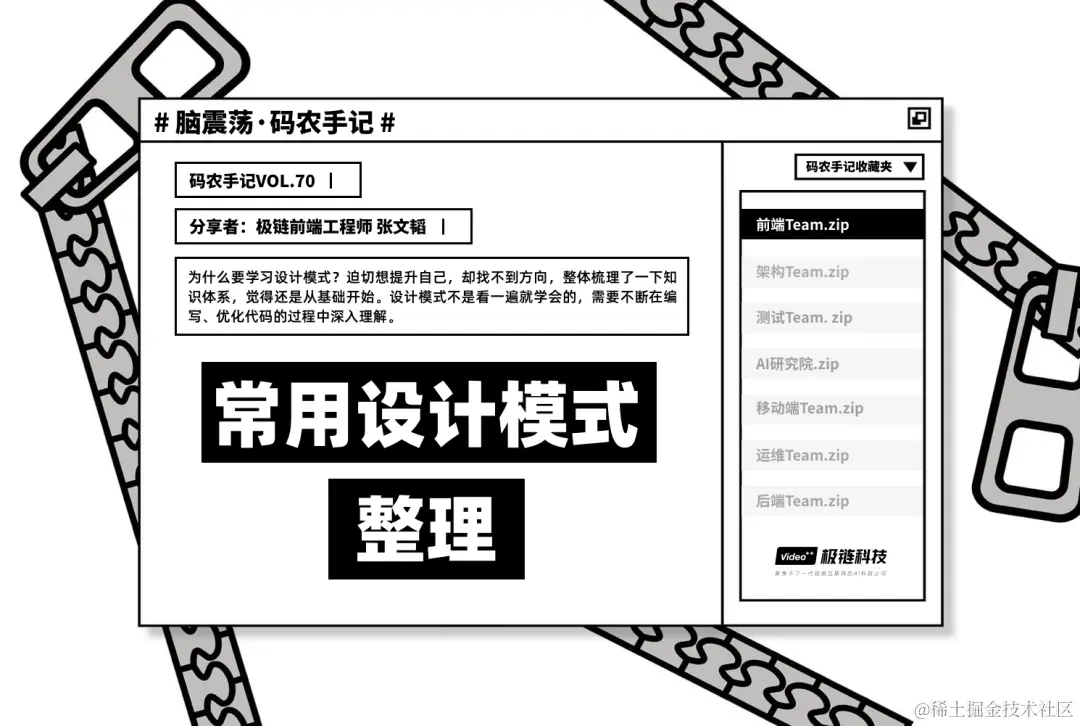 通俗一点说,设计模式是在某种场合下对某个问题的一种解决方案。如果再通俗一点说,设计模式就是给面向对象软件开发中的一些好的设计取个名字。