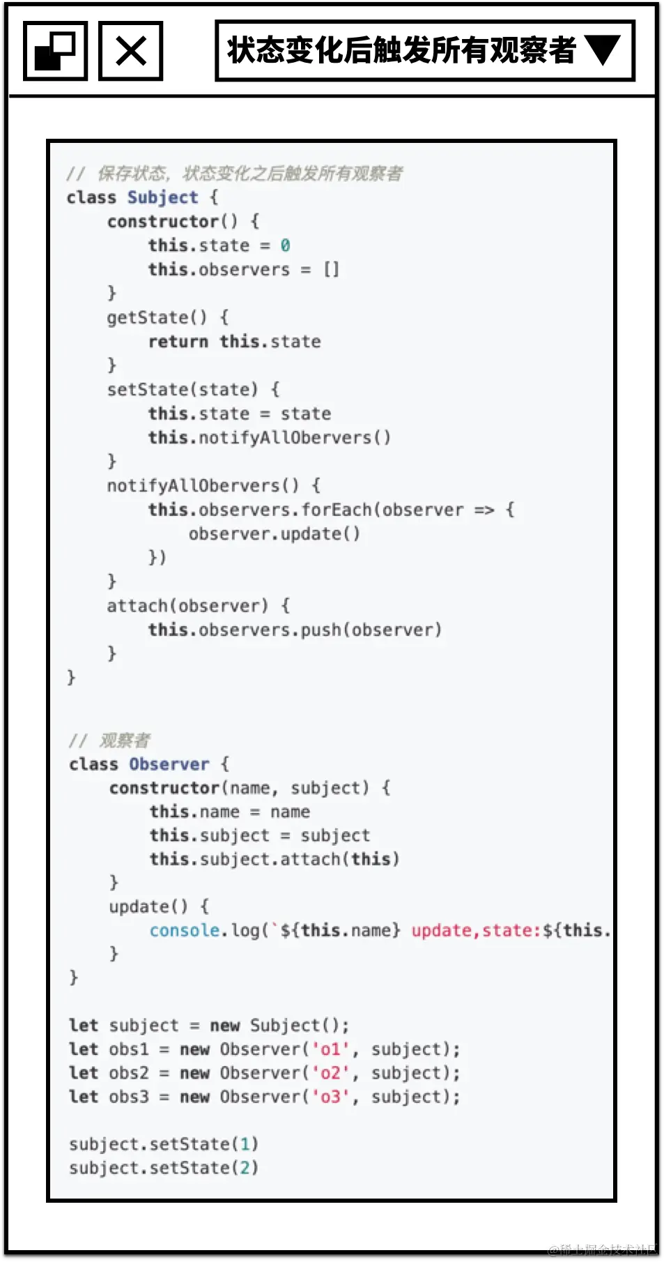 发布—订阅模式又叫观察者模式,它定义对象间的一种一对多的依赖关系,当一个对象的状态发生改变时,所有依赖于它的对象都将得到通知。