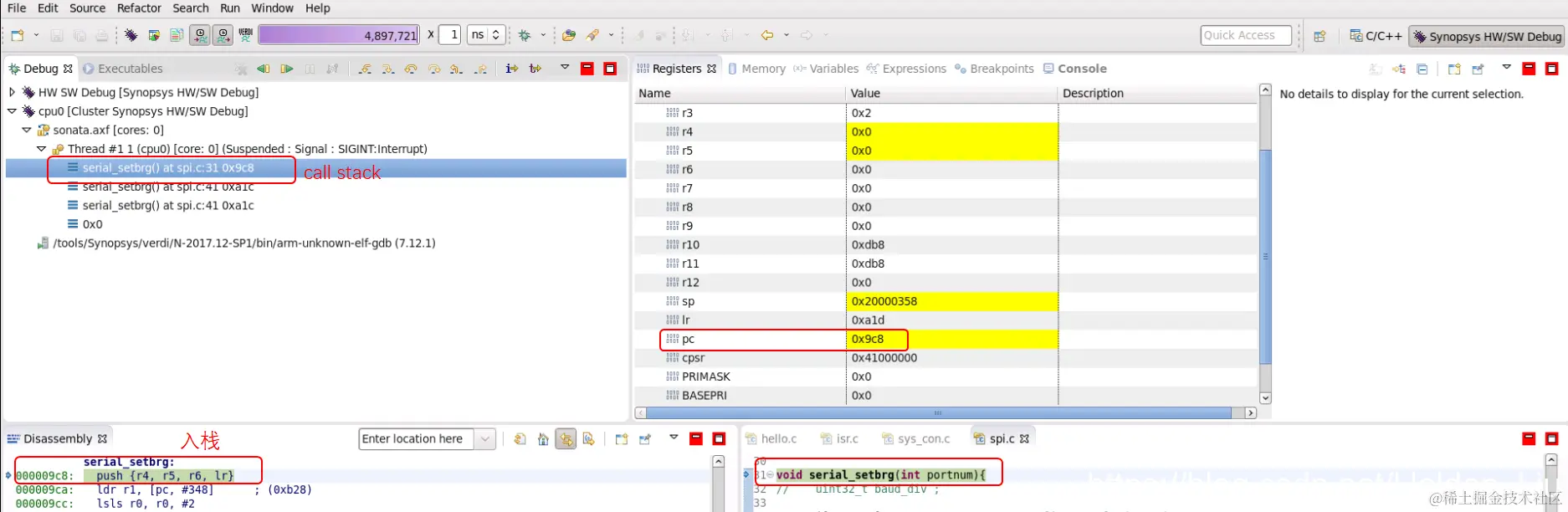 有两种方式,一种是利用 hwsw_debug命令打开 eclipse软件界面,再 “Launch Verdi”打开verdi硬件界面,另一种和平常debug一样,直接打开verdi界面,然后加载上述生成的hwsw.fsdb,再在”Tool -> Invoke HW/SW Debug" 打开eclipse软件界面。