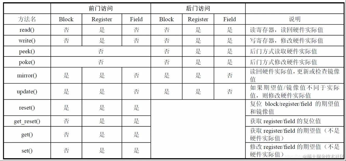 在UVM支持的寄存器操作中,有get、update、mirror、write等等一些方法,在这里整理一下他们的用法。