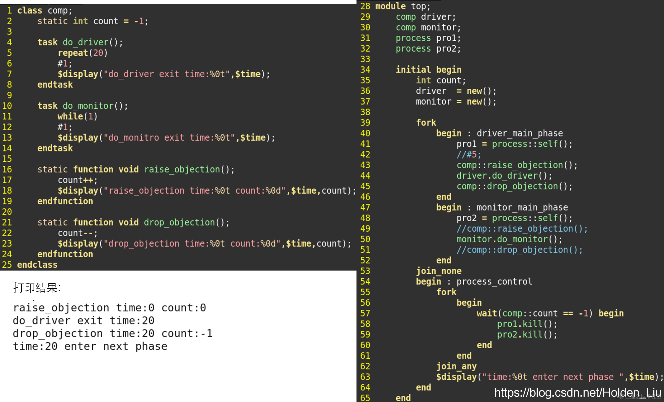 通过简单的代码使用process来实现一下UVM中的objection: