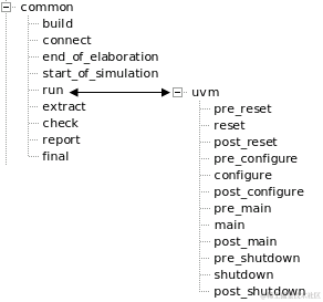 到此,各个phase的执行顺序就固定了。如果没有单独创建domain,那么只有common_domain和uvm_domain这两个domain会被默认创建。结构如下: