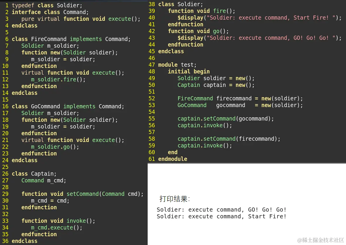 一个简单的示例:captain是命令的发起者,soldier是命令的接收者。