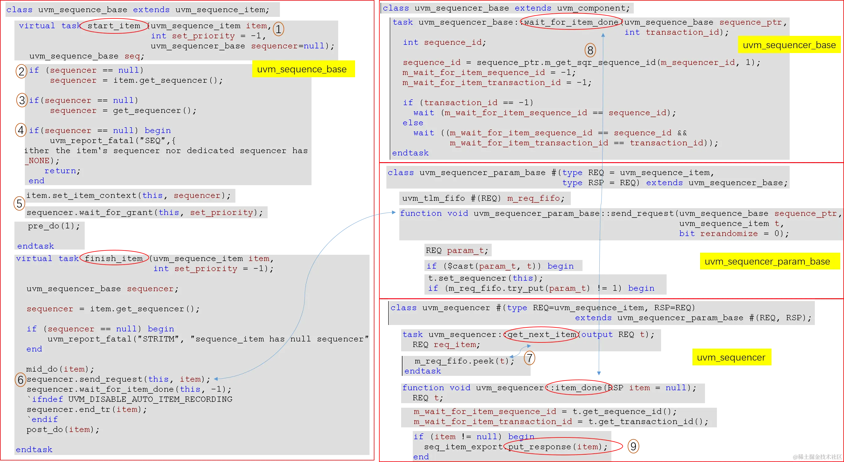 start_item/finish_item封装函数以及sequence,sequencer,driver的握手关系如下图: