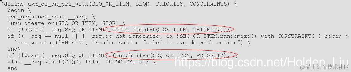 UVM中提供了多个宏,`uvm_do,`uvm_do_with,`uvm_do_on_with等,但最终都是调用了uvm_do_on_pri_with宏。uvm_do_on_pri_with宏第一个参数可以传入sequence,也可以传入transaction。