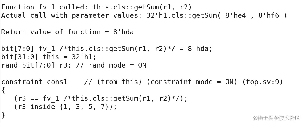 对于包含function 约束的求解,首先求解出function的值,并没有错误,这个也是符合 IEEE SystemVerilog Std 1800-2012 规范的。