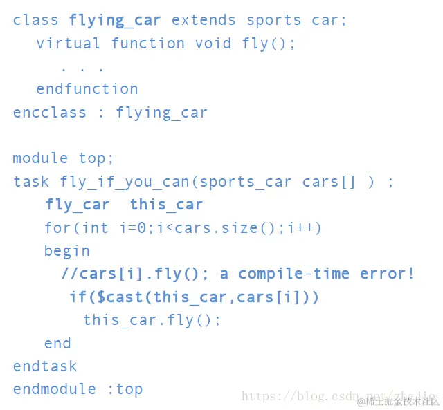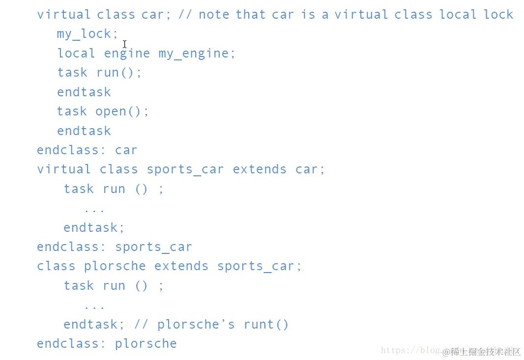 注: SystemVerilog类与动态特性的Verilog模块实例不同。模块实例,它们的编号和层次结构是在Verilog中进行阐述时创建的,并且在整个模拟过程中都是静态的。对象可以在运行时根据请求创建。这允许创建模块化和优化的数据结构。在功能验证中,测试平台的构建过程是动态的,这使得它更加灵活。它使用程序流控制来实例化所需的测试台结构。根据需要,动态对象用于表示数据项(如数据包,帧或事务),并且通常会考虑其他环境变量值\