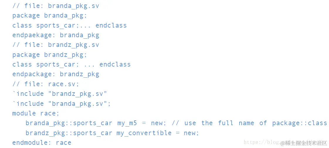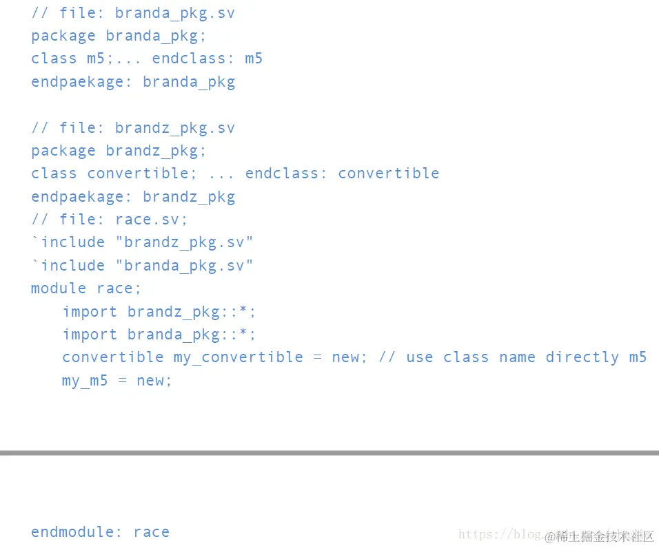 典型的应用程序利用来自多个来源的许多类。有可能某些类型,类或函数名称可能会发生冲突并导致编译错误。修改类和类型名称以获得唯一性的成本可能很大。此外,当使用加密的代码时,如验证IP(VIP),这个问题更具挑战性。