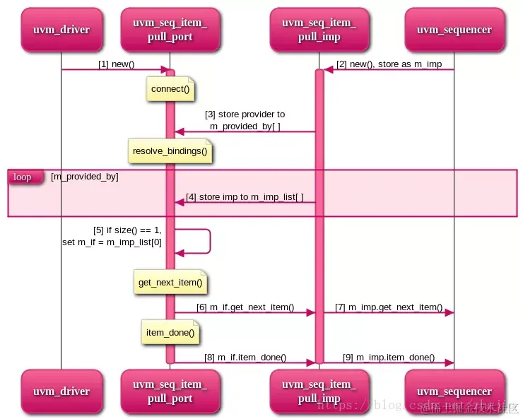 - 当seq_item_port.get_next_item()被调用时,任务调用get_next_item()的seq_item_export,这反过来又调用uvm_sequencer 的 get_next_item()(步骤6和7)。