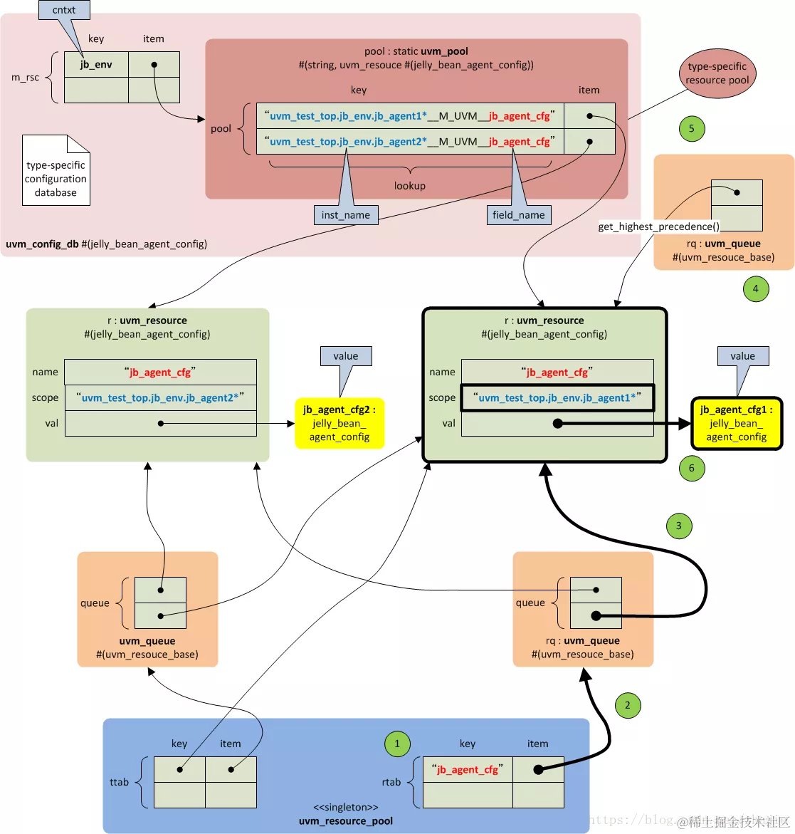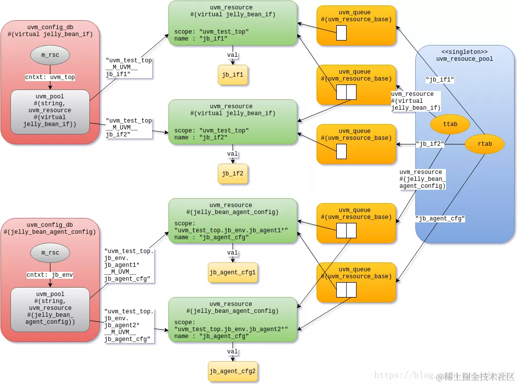- 第二种队列将句柄存储到具有公共类型的uvm_resource对象。为每个唯一类型创建一个uvm_queue。在我们的例子中,为jelly_bean_agent_config类型创建了一个uvm_queue。