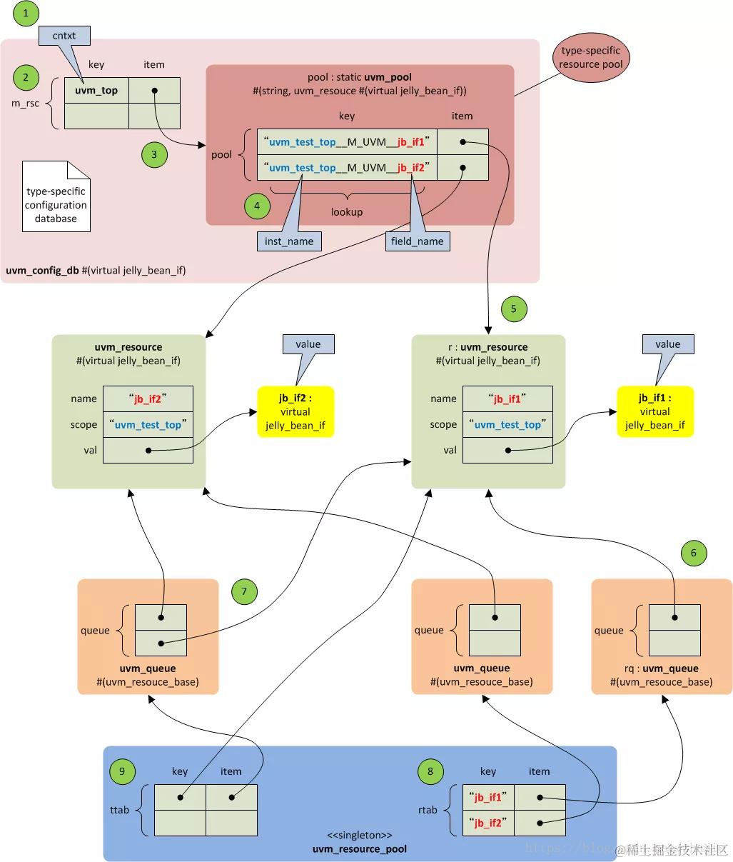 - 队列在单例uvm_resource_pool中注册。 uvm_resouce_pool有两个关联数组。一个数组(rtab)使用field_name作为键。