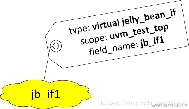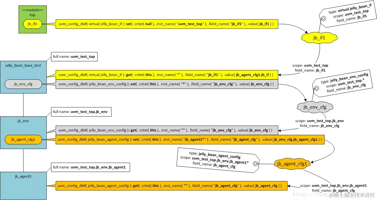 如果cntxt为空,则作用域仅由inst_name组成,即“uvm_test_top”。下图概念性地显示了jb_if1在数据库中的标记方式。