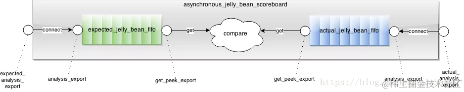 这篇文章将解释如何使用Analysis FIFO。 假设我想要一个记分板来比较两种jelly beans; 一个流是用于“期望的”jelly beans,另一个是用于“实际的”jelly beans。 同时假设jelly beans被异步喂入记分板。 为了同步jelly beans,我使用了两个analysis FIFO: