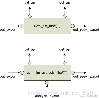 TLM 1定义了两个FIFO; uvm_tlm_fifo和uvm_tlm_analysis_fifo。见下面的组件图和类图。\