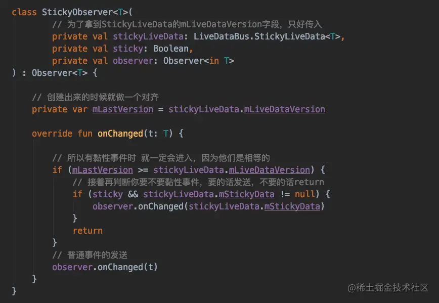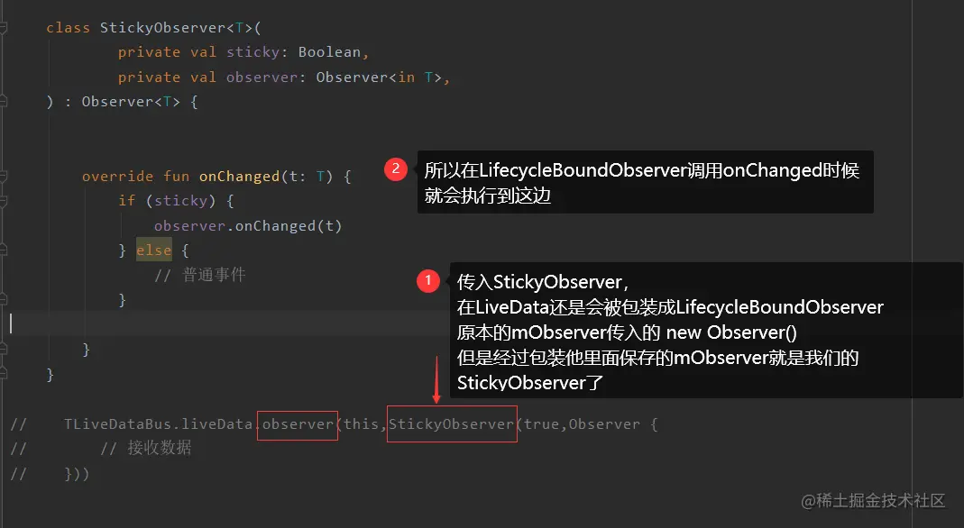 * 所以最终发送数据会调用StickyObserver的onChanged 就可以做黏性事件的处理了