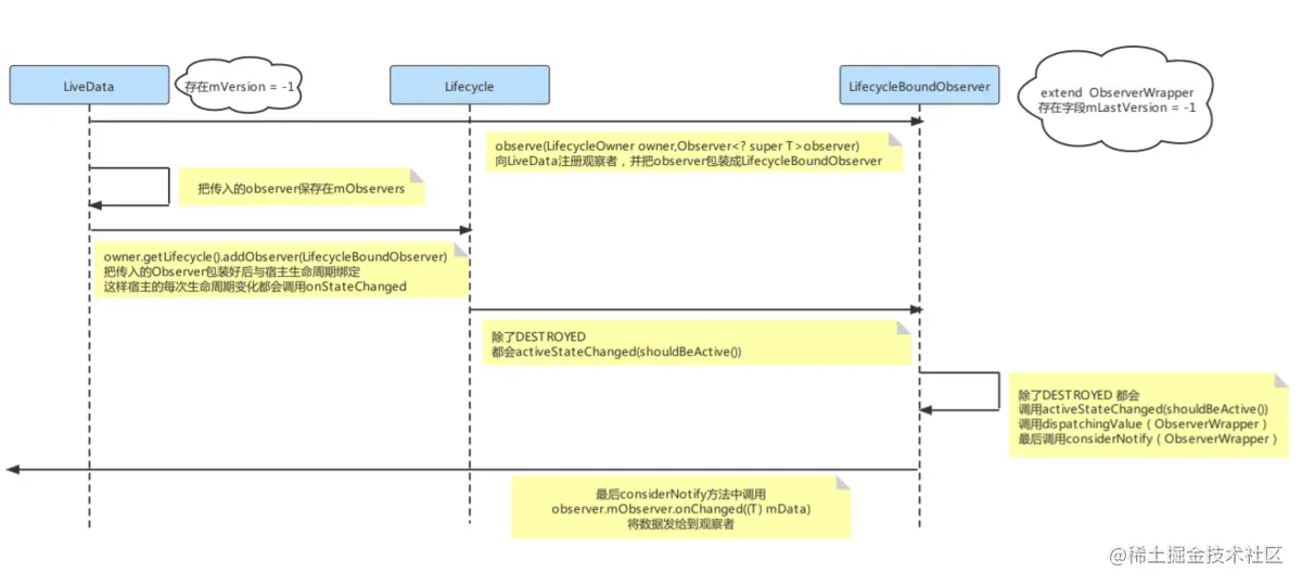 * 且会创建StickyObserver,对应一个 mLastVersion, 初始的值为0