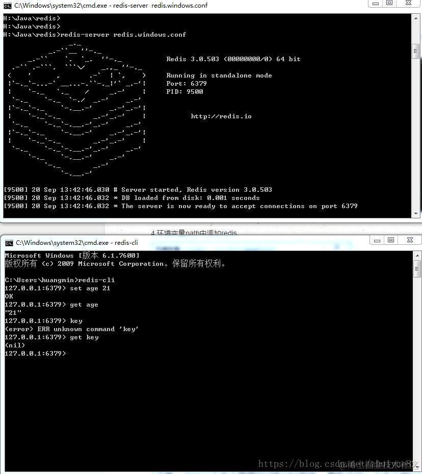 这样可以直接利用redis-cli而不需要每次进入redis的安装目录,如下图所示(注意:运行以下命令需要启动Redis服务,重新开启一个命令窗口):