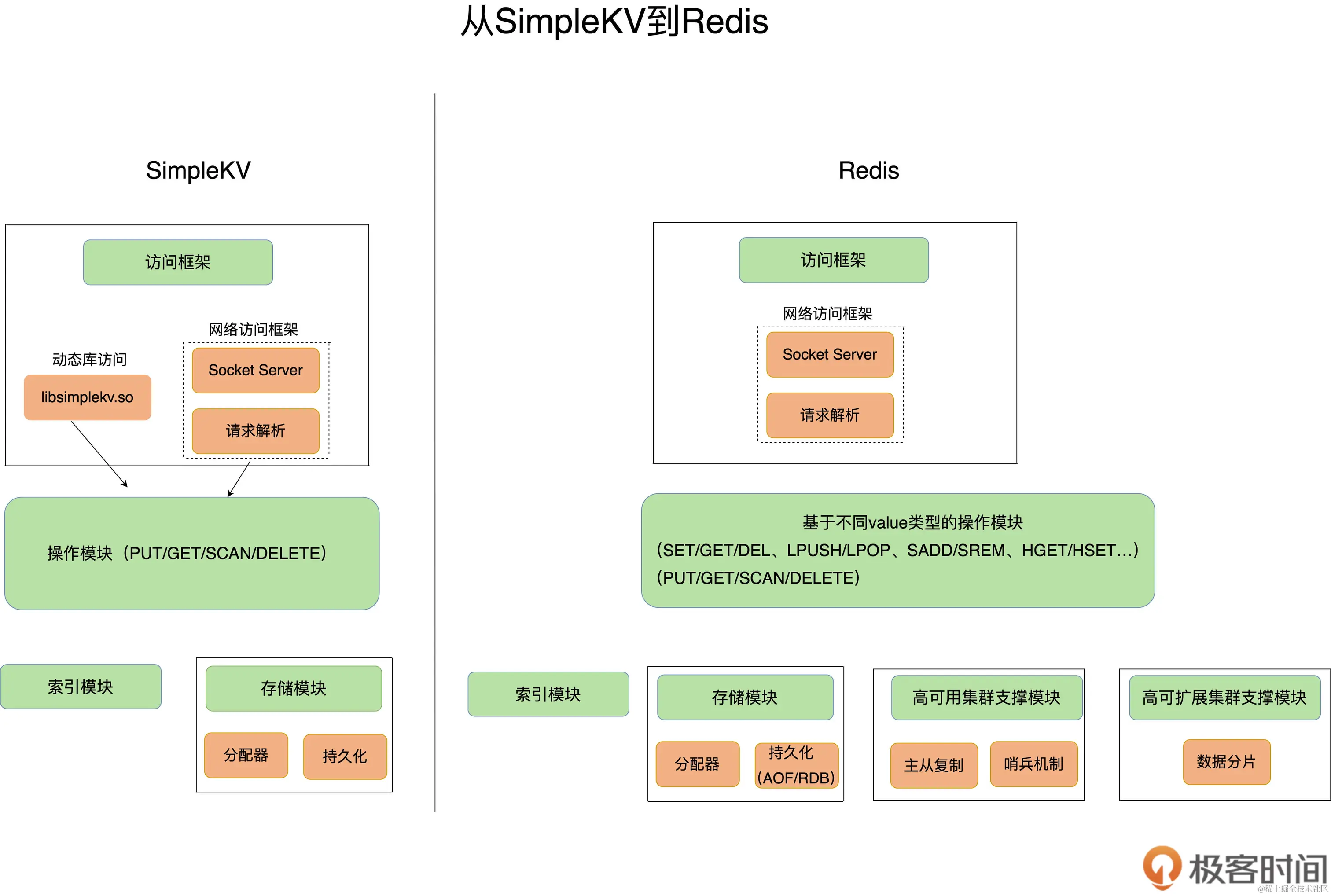 通过网络框架以socket通信的形式对外提供键值对操作