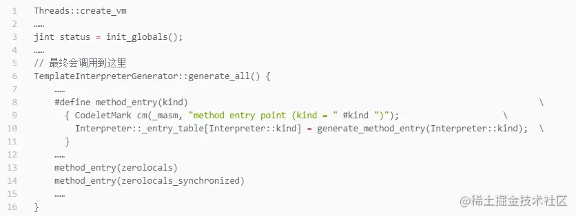 这些entry point是什么时候生成的呢?JVM启动的时候,看代码