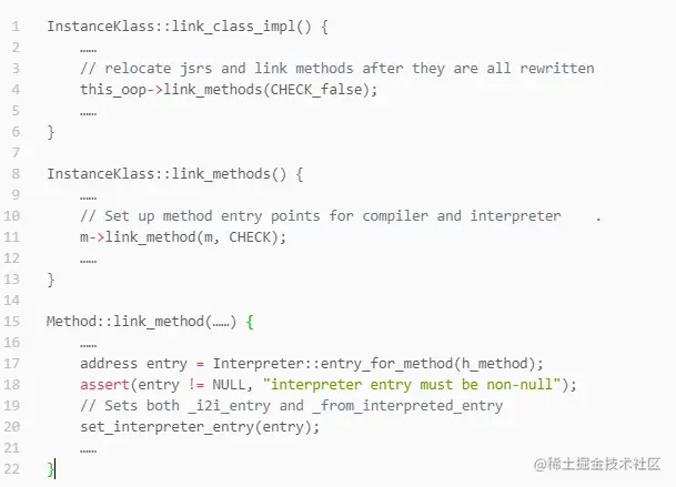 那Java中的每个方法,何时与这些入口点进行绑定的呢?在链接阶段。看代码