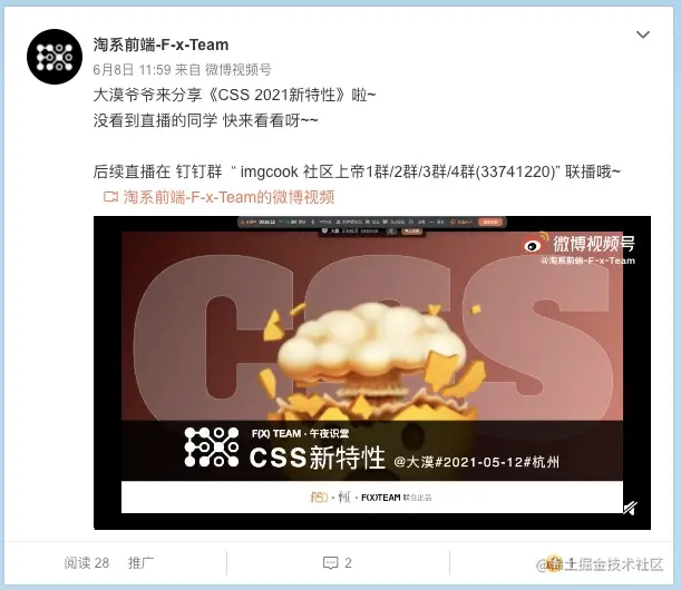 淘系前端-F-x-Team 开通微博 啦!(微博登录后可见)除文章外还有更多的团队内容等你解锁🔓