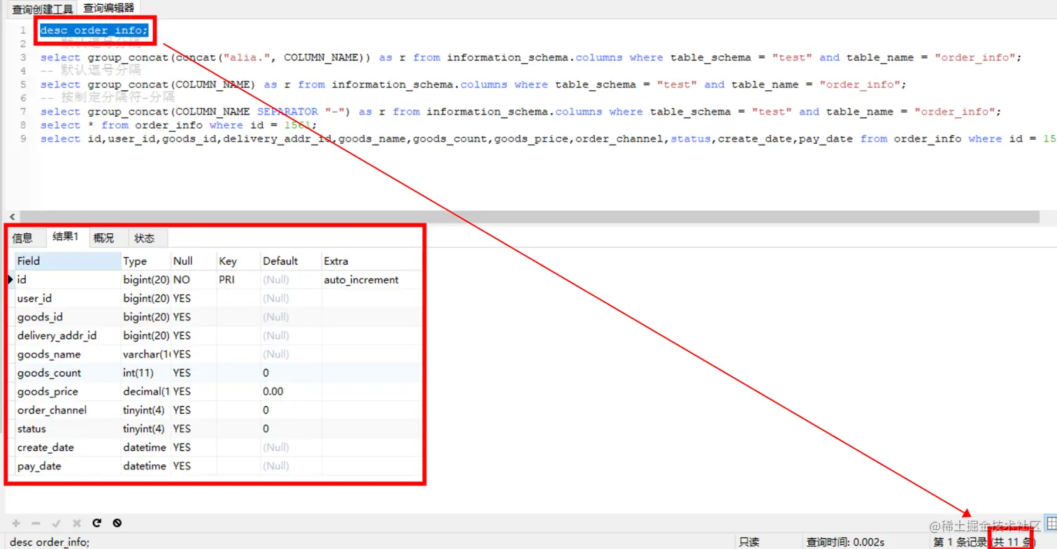 select group_concat(COLUMN_NAME) as r from information_schema.columns where table_schema = "test" and table_name = "order_info";