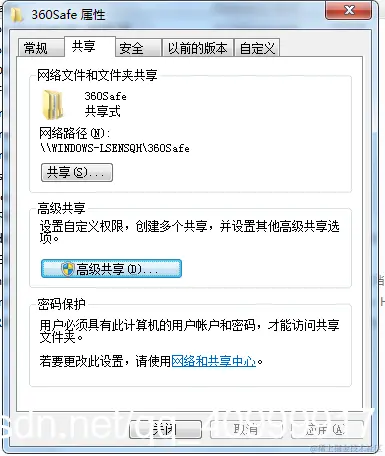或右键属性,点击共享,设置高级共享