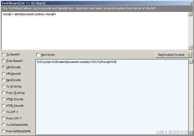 点击Fiddler 工具栏上的TextWizard, 这个工具可以Encode和Decode string.