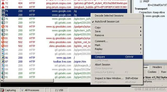 Fiddler中会话比较功能